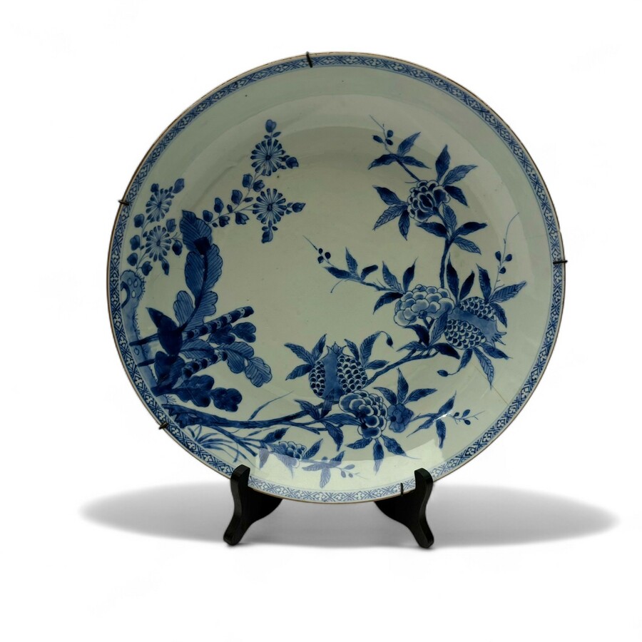 Een grote 18e eeuwse blauw-witte Chinese schotel, Kangxi periode
