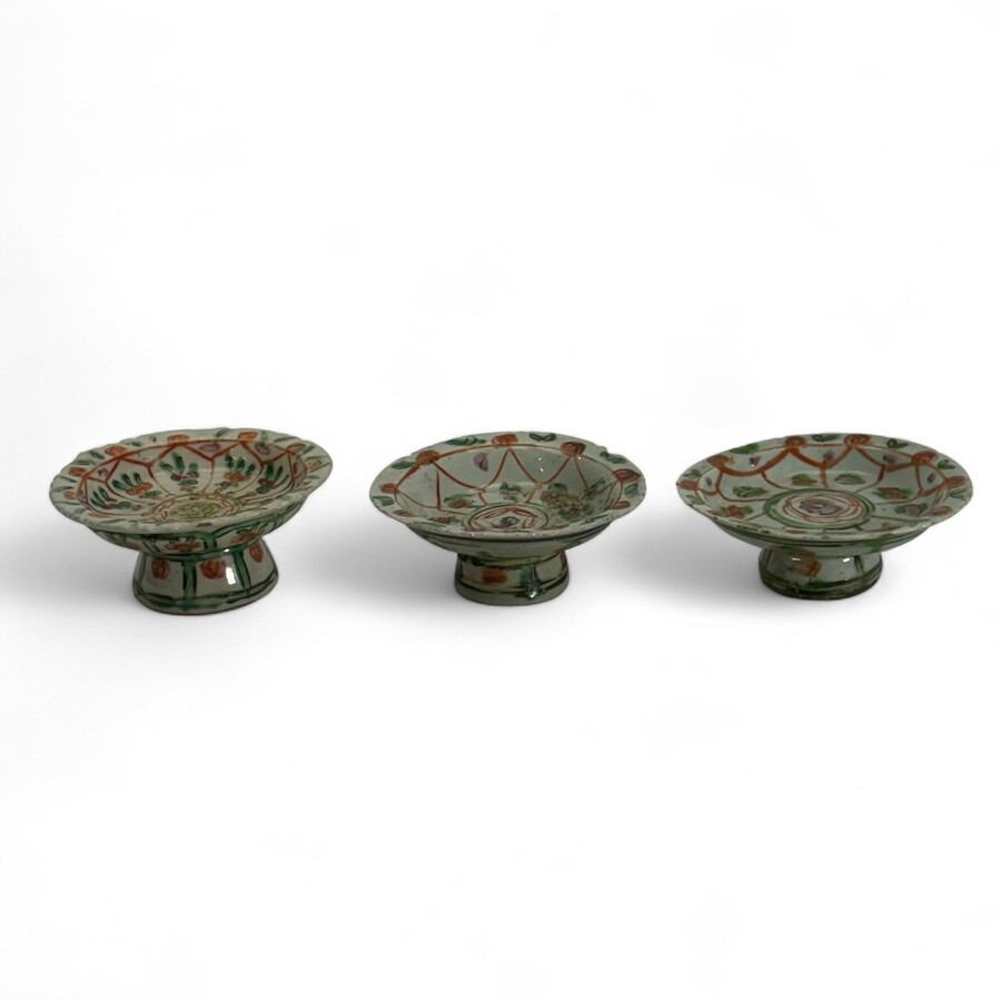 Lot van drie antieke 19e eeuwse Chinees porseleinen tazza's