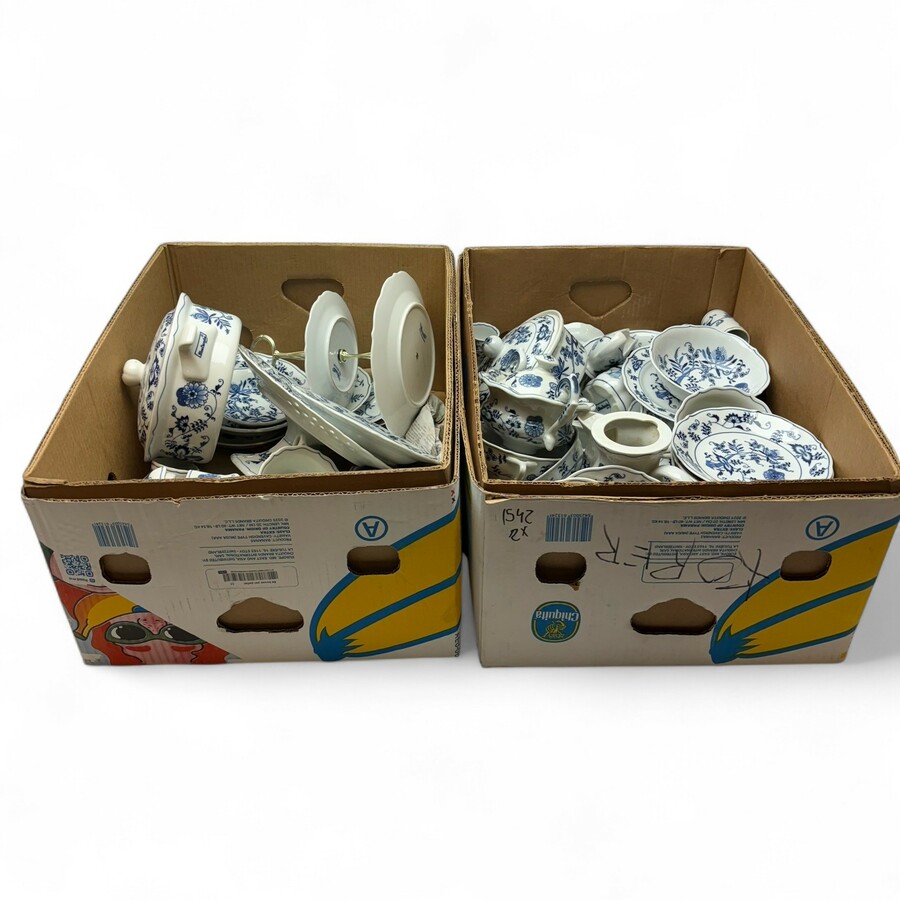 Groot lot porseleinen Zwiebelmuster serviesdelen, allen gemerkt Blue Danube. Waaronder dekschalen.