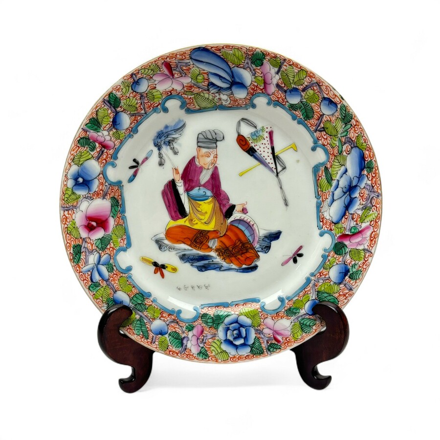 Een 19e of 20e eeuws Chinees porseleinen bord, Kantonees, met voorstelling van een zittende man. Aan de achterzijde gemerkt. Conditie: met haarlijn