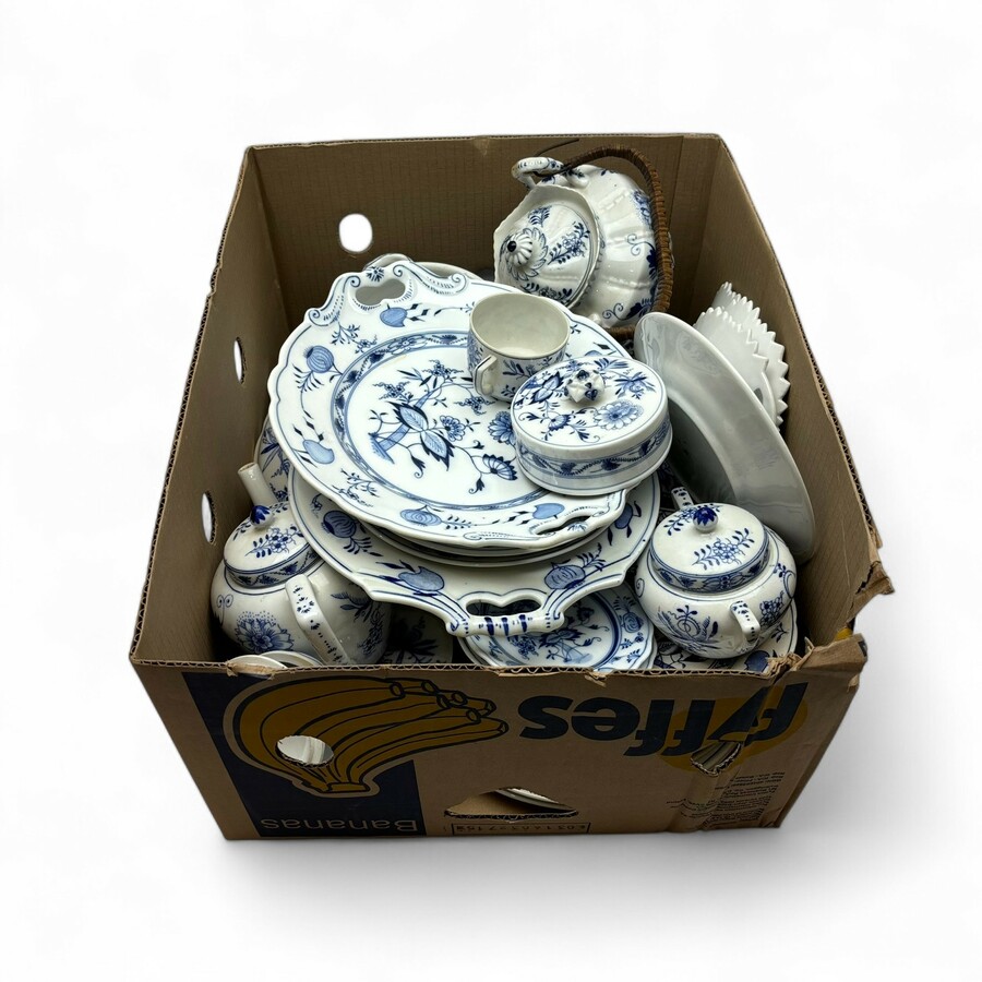 Lot divers 19e en 20e eeuws Swiebelmuster porselein. Verschillende makers, o.a. Regout.