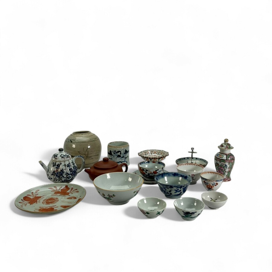 Groot lot divers Chinees porselein, 18e tot 20e eeuw, waaronder imari, blauw-wit en Yixing. Diverse condities.