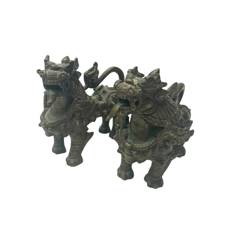 Een stel Chinees gepatineerd bronzen tempelleeuwtjes. 20e eeuws.