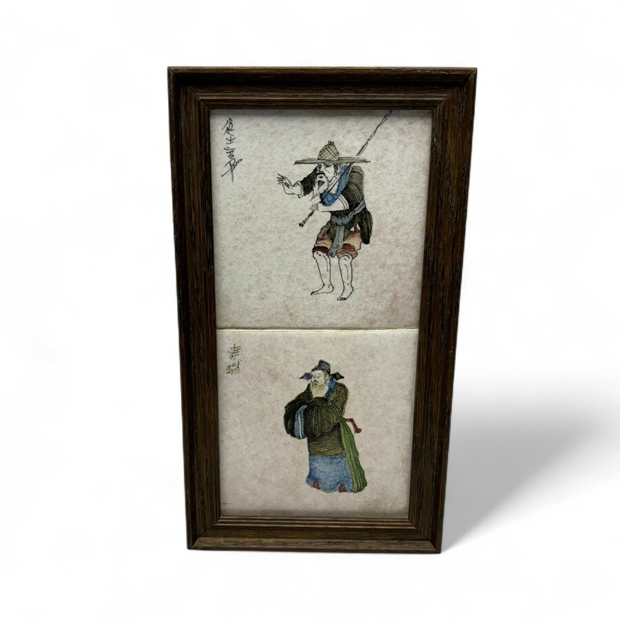 Lot van twee ingelijste Tichelaar tegels, Chinezen