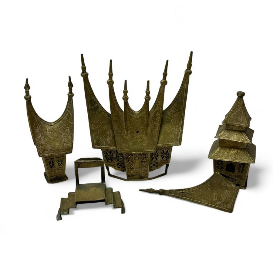 Lot met Indische messing sierhuisjes en tempels. Diverse soorten, formaten en vormen. 20e eeuws.