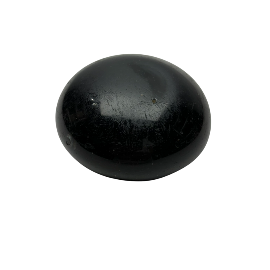 Een antiek donkergroen strijkglas, 8,5 cm doorsnede en 4 cm hoog. 17e eeuws of ouder.