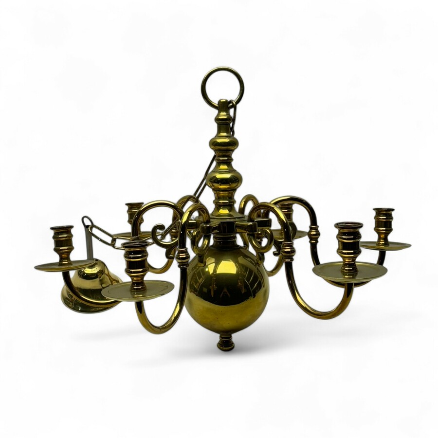 Een 20e eeuwse bronzes kroonluchter, zesarms