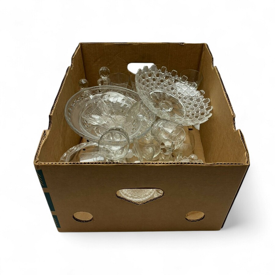 Groot lot kristal, waaronder een antieke tazza, olie- en azijnstel, schaal en wijnglazen