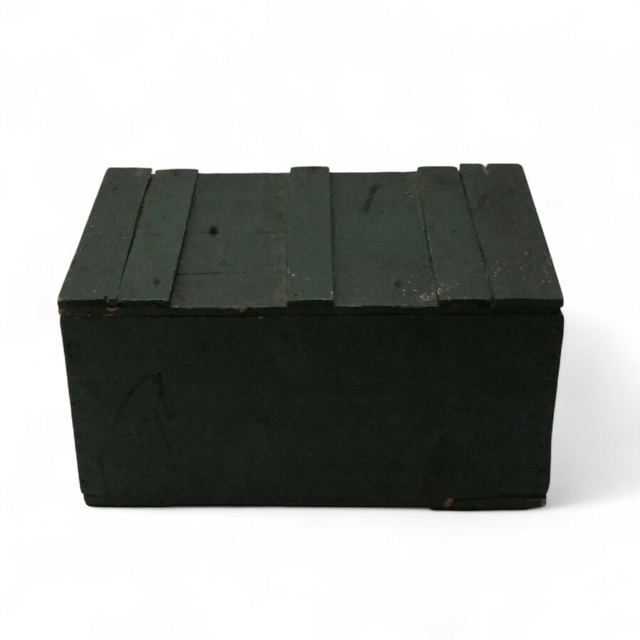een 20e eeuwse groen houten kist, gevuld met Meccano