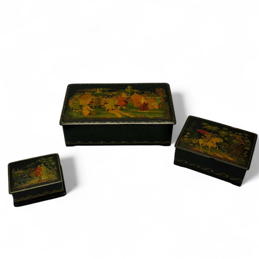 Lot van drie 20e eeuwse Russisch lakwerken doosjes met diverse decors