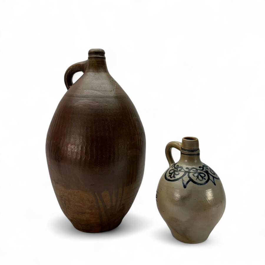 Lot van twee 19e eeuwse aardewerken kruiken, één Keuls.