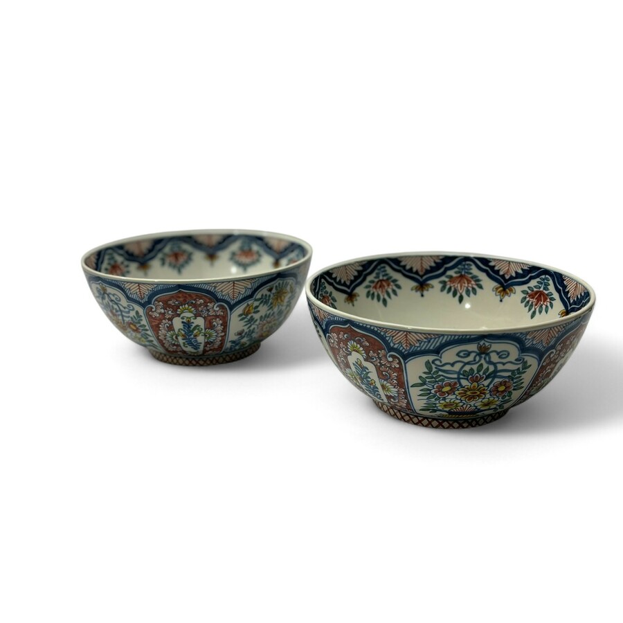 Een stel 20e eeuwse polychroom gedecoreerde kastkommen, gemerkt Tichelaar Makkum.