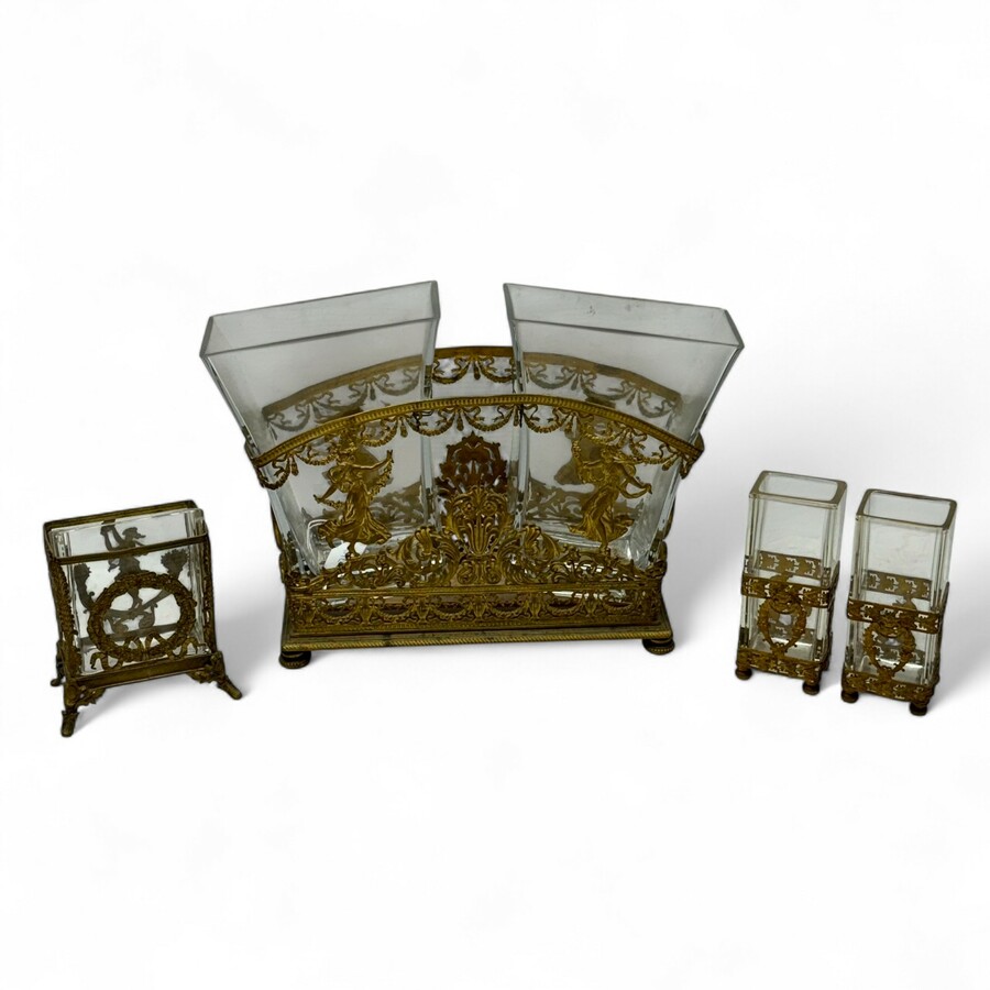 Lot van vier antieke 19e eeuwse Franse vaasjes met verguld montuur.