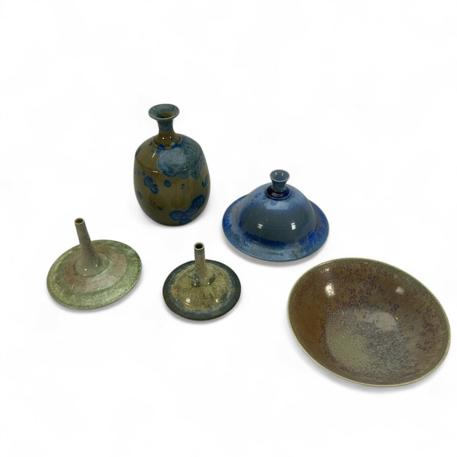Lot divers 20e eeuws keramiek met kristalglazuur, enkele objecten gemonogrammeerd en gemerkt voor André Vaerewijck (Heiloo 1951)