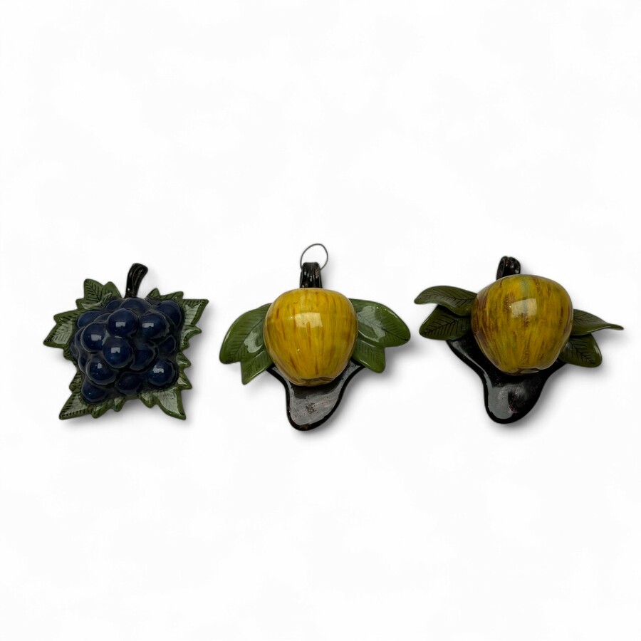 Lot van drie 20e eeuwse aardewerken Tichelaar Makkum wandornamenten, twee appels en een druiventros. Allen gemerkt.