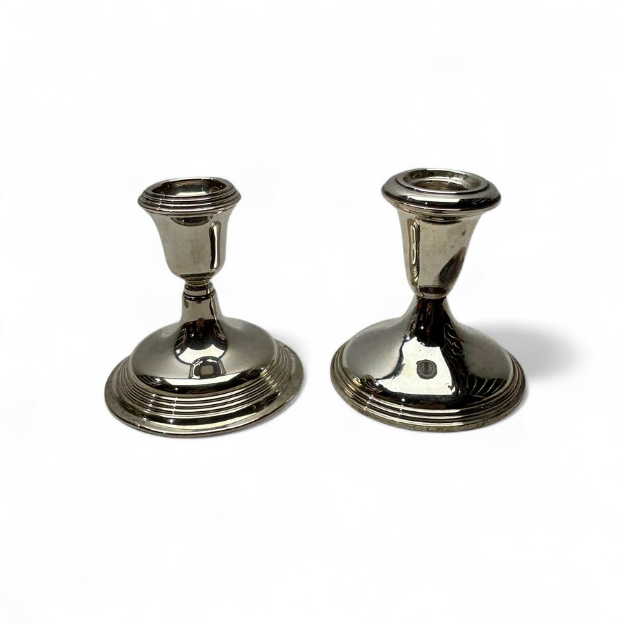 Twee eerste en tweede gehalte (925/1000 en 835/1000) zilveren kandelaars op ronde voet. Engels en Holland exemplaar.