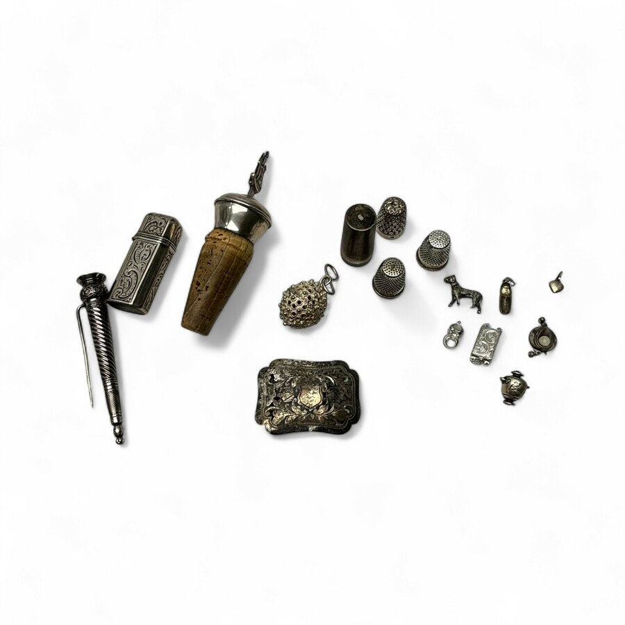 Lot klein zilver, waaronder: tweede gehalte zilveren (835/1000) flessenstop in de vorm van een schip, meester Familie A. Pluut & Xoon, Schoonhoven, werkzame periode 1942-1956, tweede gehalte...