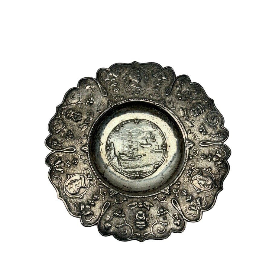 Een antiek 19e eeuws zilveren schaaltje in Renaissance stijl, aan de achterzijde gekeurd.