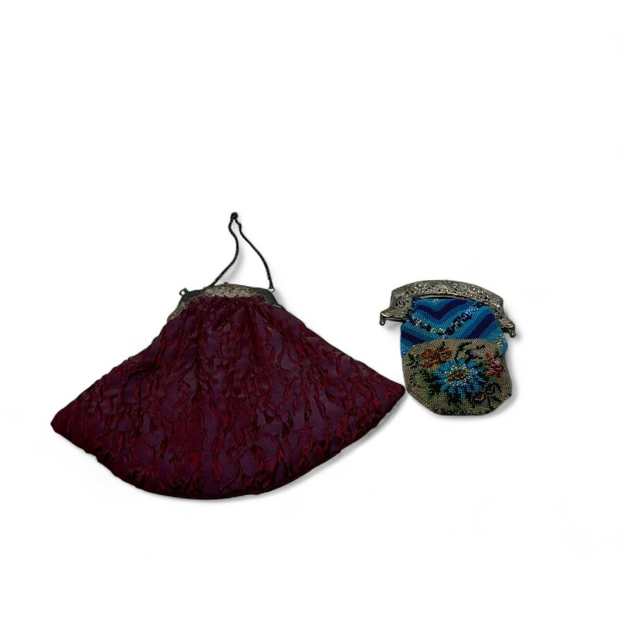 Twee antieke tweede gehalte (835/1000) zilveren beursbeugels. 1 aan kralenbeurs en ander aan een stoffen tas. 19e eeuws.