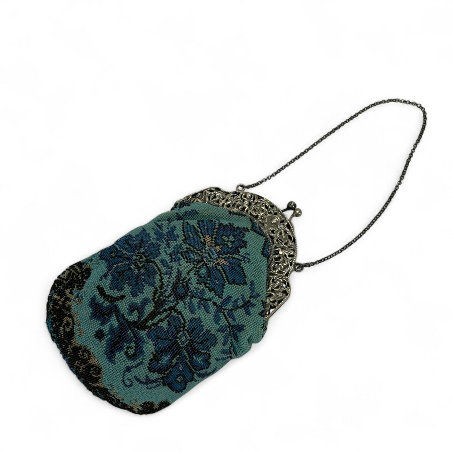 Een tweede gehalte (835/1000) zilveren beursbeugel aan kralentas