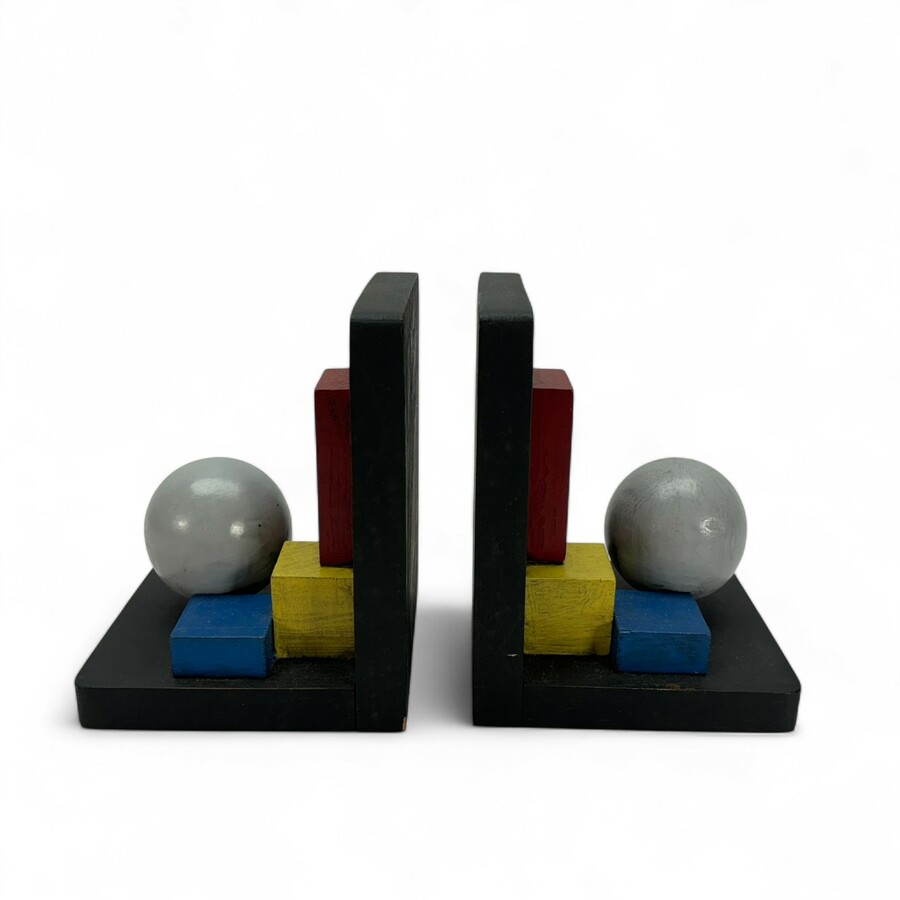 Een stel houten gestilleerde boekensteunen beschilderd in de kleuren van de stijl, 15 cm hoog. 20e eeuws.