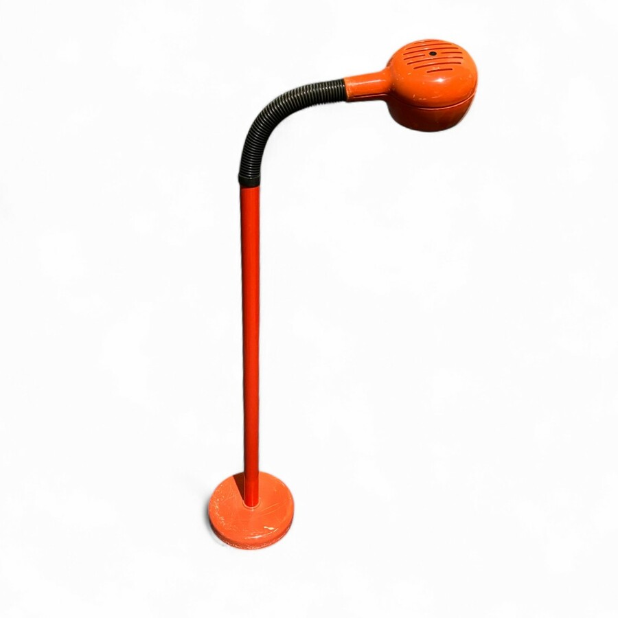 Een jaren '70 oranje staande lamp, buigbaar, model 'Cobra', aan de onderzijde gemerkt 'Fagerhults'