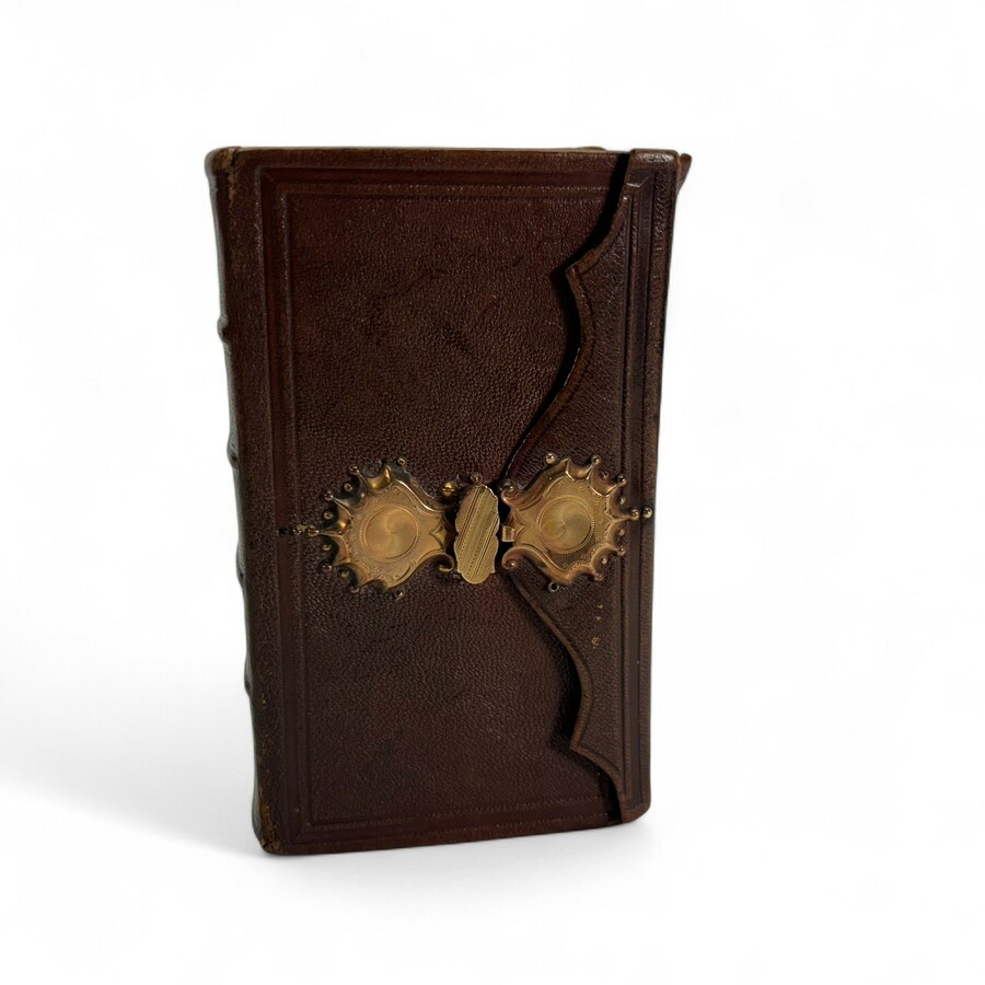 Een antieke 19e eeuwse Bijbel, Joh. Enschede & Zonen, 1875, in lederen kaft en met 14 karaats (585/1000) gouden slot