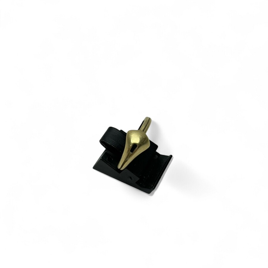 Een 14 karaats (585/1000) geelgouden trouwring, met daarbij een dasspeld.