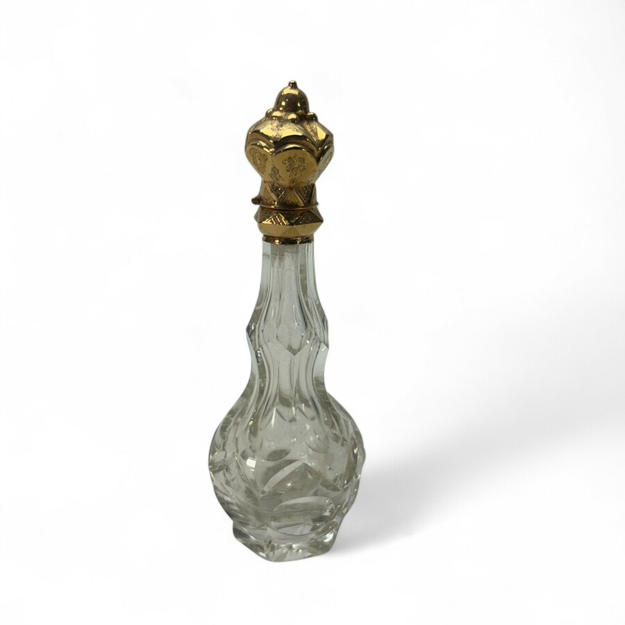 Geslepen kristallen parfumflacon met 14 karaats gouden (585/1000) hals en dop