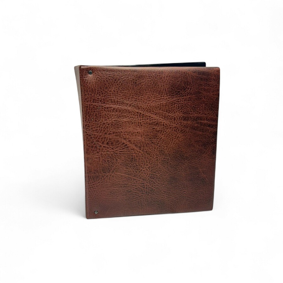 Een bruin muntenalbum gevuld met o.a. diverse biljetten en 20e eeuws Nederlands muntgeld