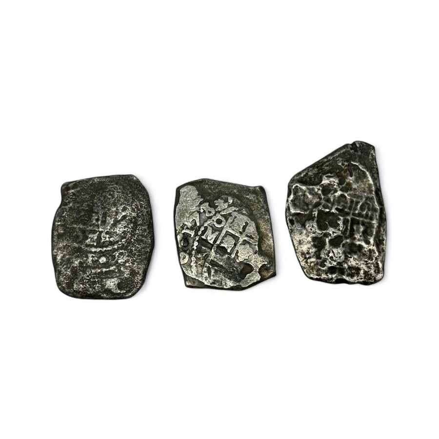 Lot van drie 18e eeuwse zilveren munten uit scheepswrak