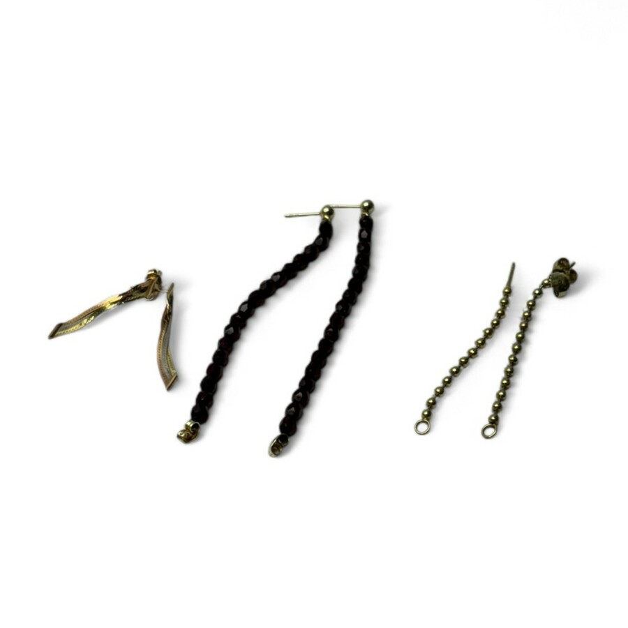 Lot divers: granaten oorbellen met 14 karaats (585/1000) geelgouden sluiting, twee tricolor 14 karaats (585/1000) geelgouden oorbellen, e