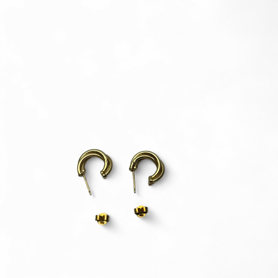 Een stel 20e eeuwse 14 karaats (585/1000) geelgouden oorknoppen, rond model.