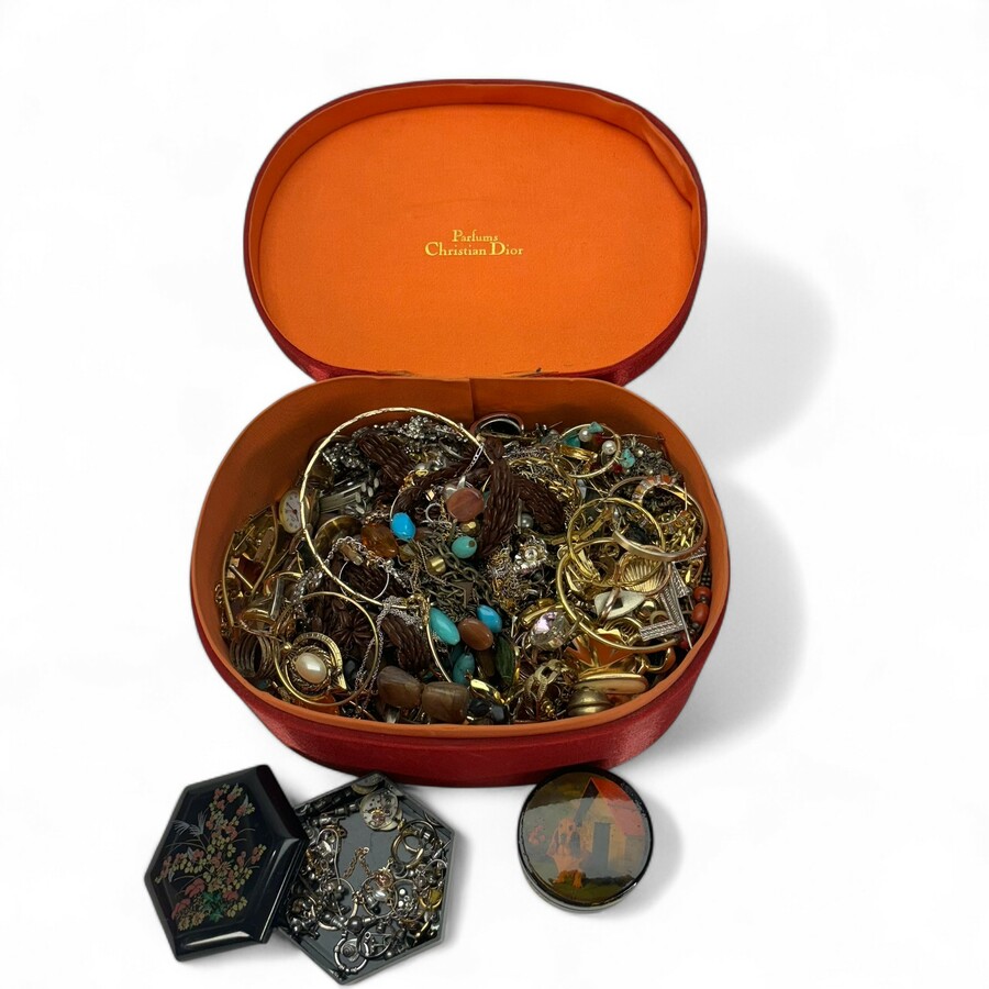 Groot lot diverse 20e eeuwse sieraden, waaronder veel verguld, in Dior doosje