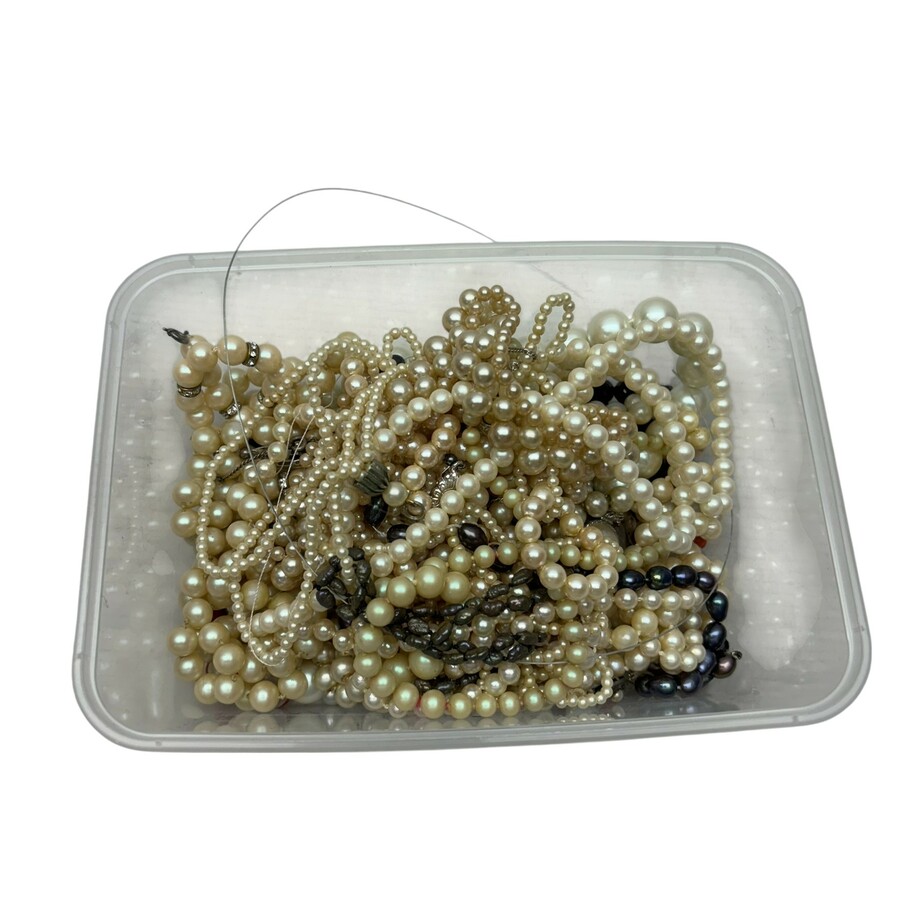Lot diverse (faux) parelsnoeren, waaronder enkele met zilveren slot