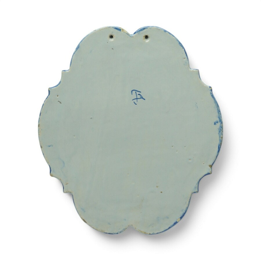 Een antieke blauw-wit gedecoreerde plaquette, met voorstelling van een kerkdorp met vaart. Gemerkt Tichelaar Makkum.