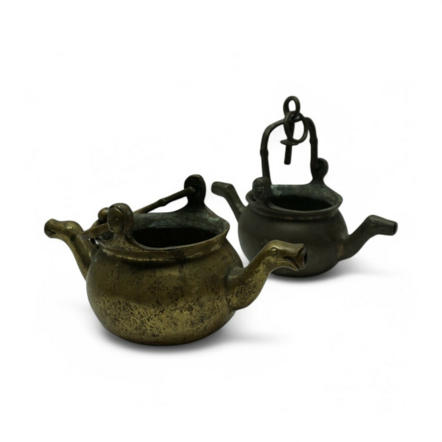 Twee bronzen lavabo's, naar antiek voorbeeld.