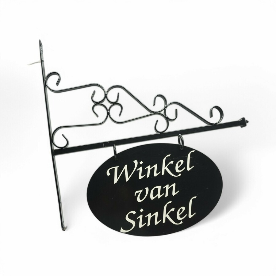 Een 20e eeuws ovaal metalen uithangbord met tekst 'Winkel van Sinkel' .