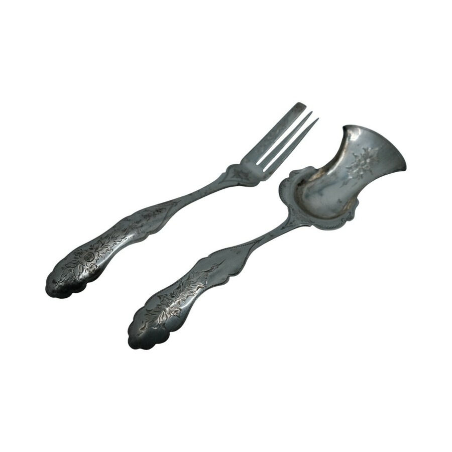 Een tweede gehalte (835/1000).zilver gegraveerd gember couvert. Mr Wed J. van der Velde, Amsterdam (1856-1867).