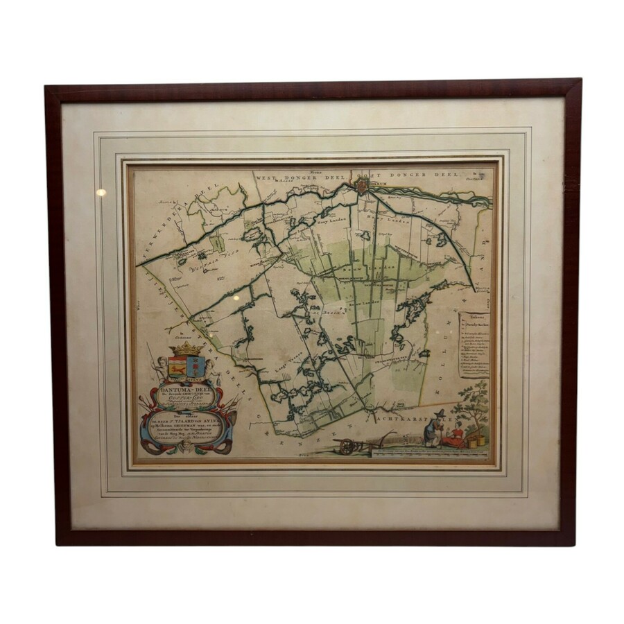 18e eeuwse kaart, Dantumadiel en 20e eeuwse ets, boerderij in sneeuw