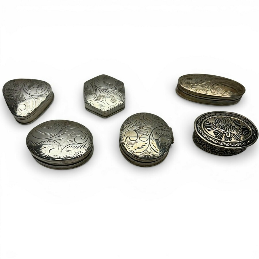 Zes zilveren dekseldoosjes