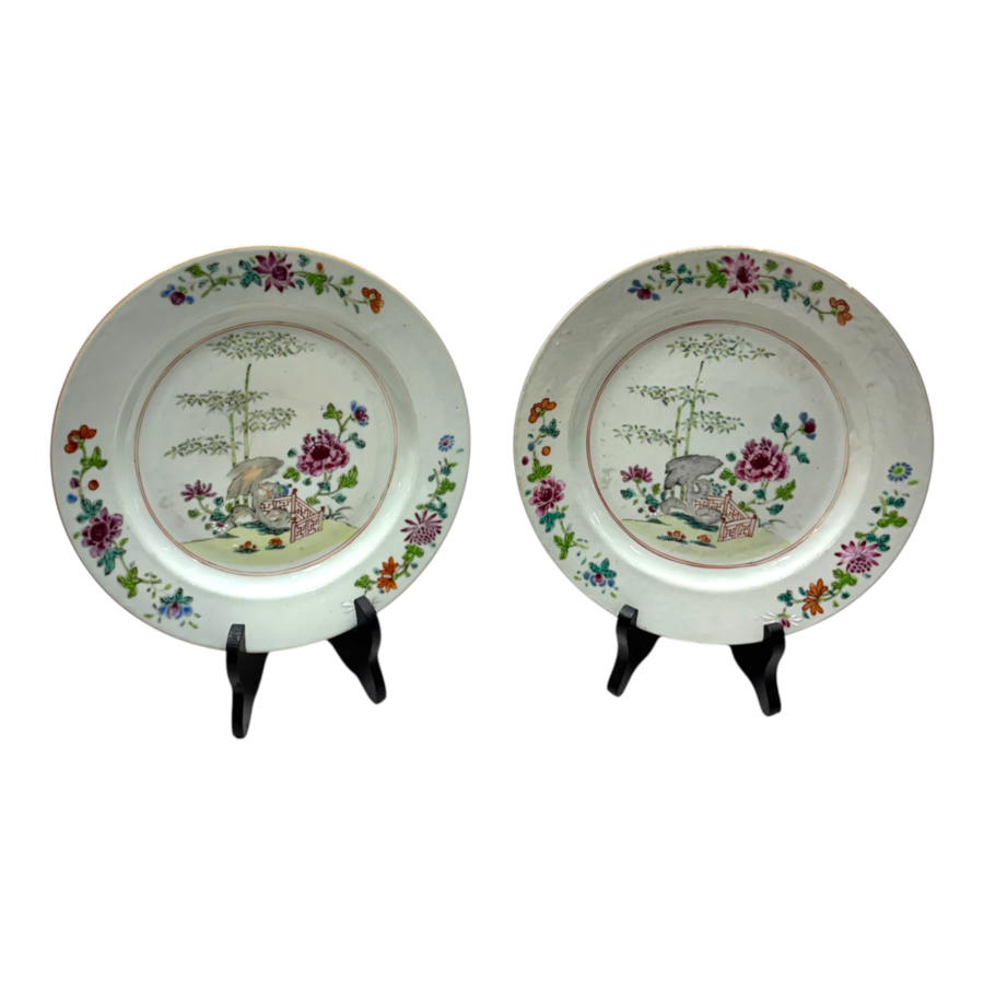 Twee 18e eeuwse Famille Rose borden