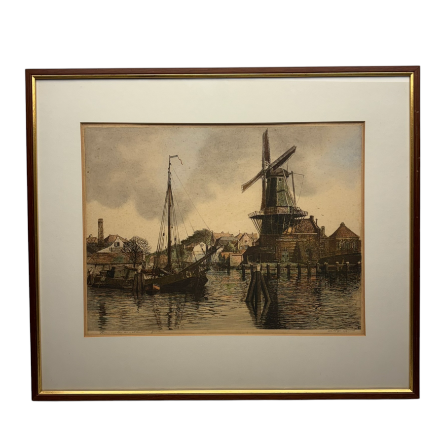 Willem Abraham de Wijn (1902-1983) Kleurenets Korenmolen De Adriaan te Haarlem.