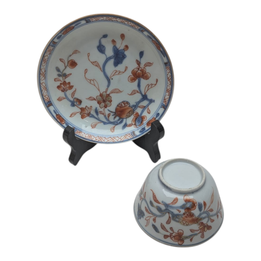 Chinees Imari kop-en-schotel met granaatappeldecor
