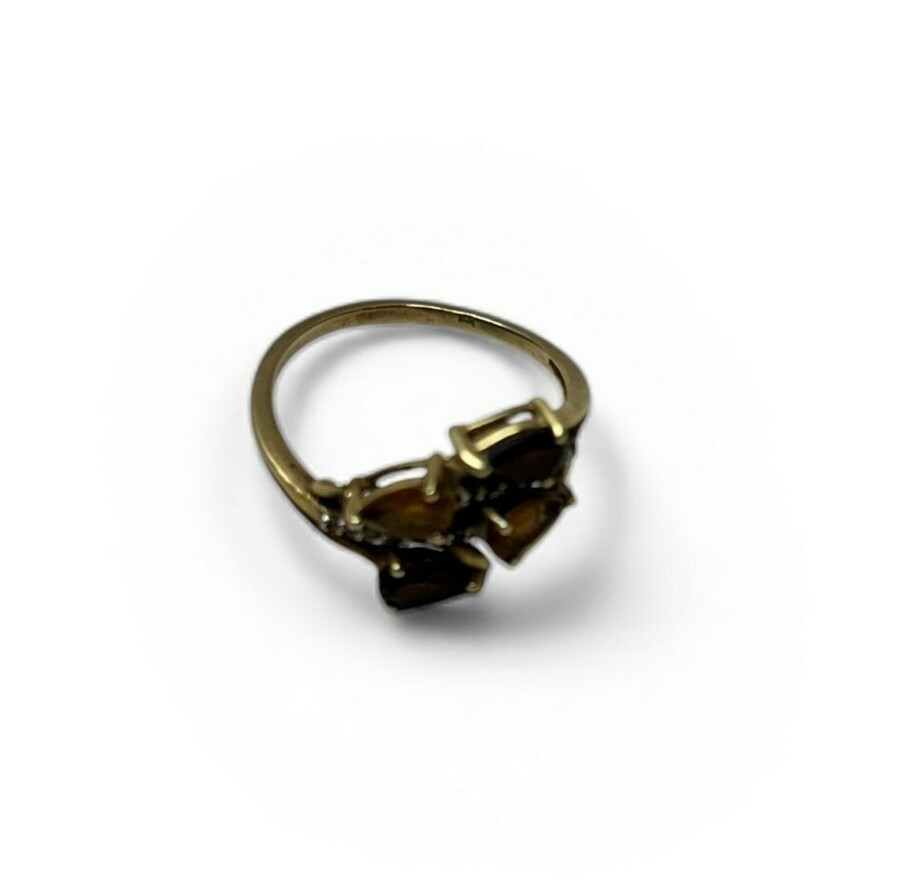 Geelgouden damesring met citrien en granaat
