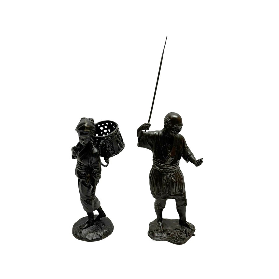 Twee 19e eeuwse Japanse bronzen sculpturen, vissers