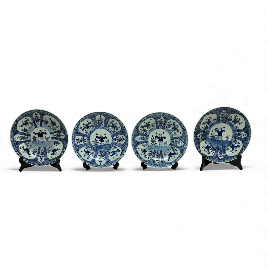 Vier Qianlong Chinees porseleinen schotels met zotjes