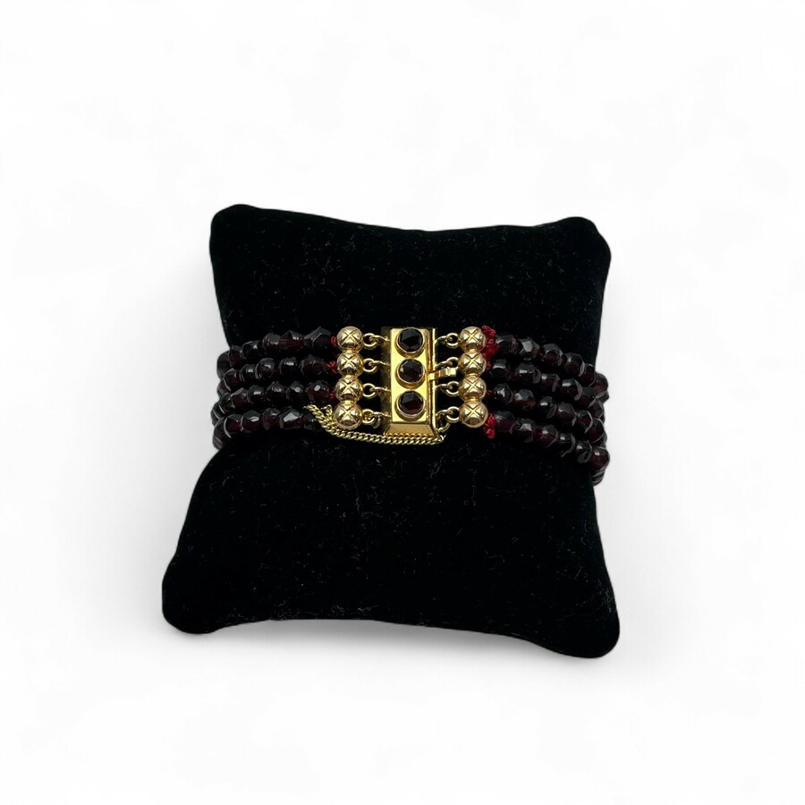Vierstrengs granaten armband met gouden sluiting
