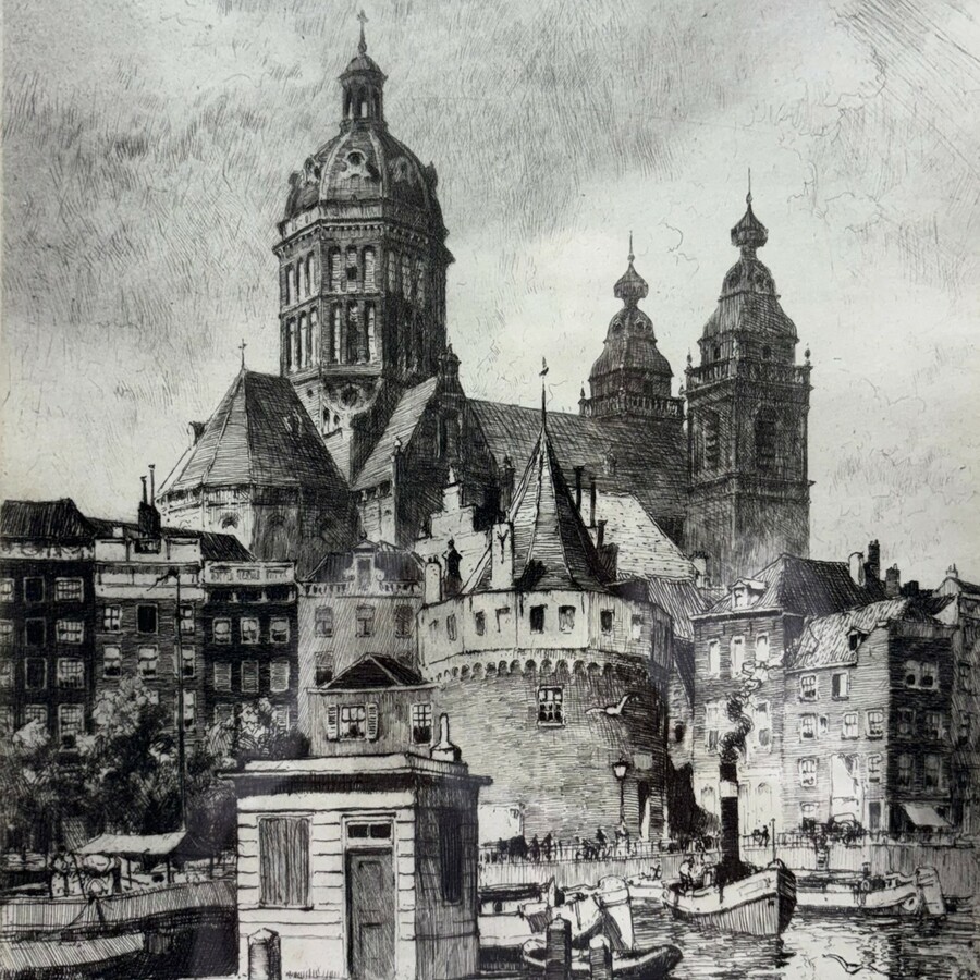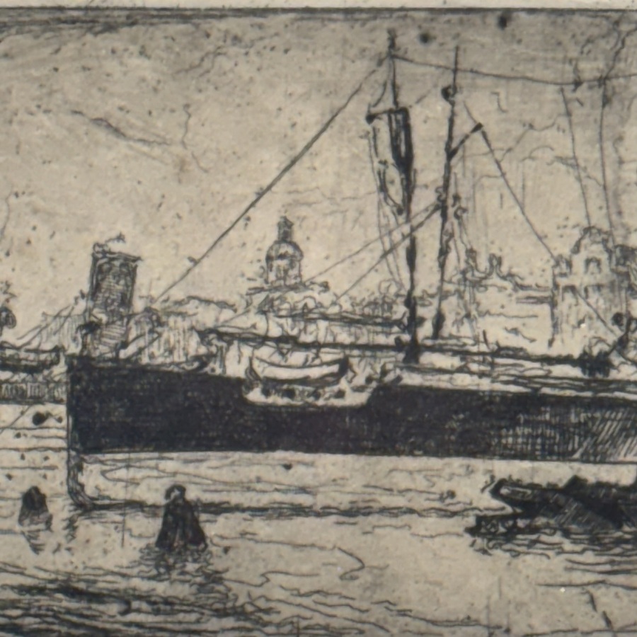 Johannes Elsinga (1893-1969), ets: stoomboot in de haven
