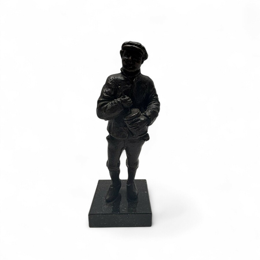 Een gepatineerd bronzen sculptuur van een boterkarner.